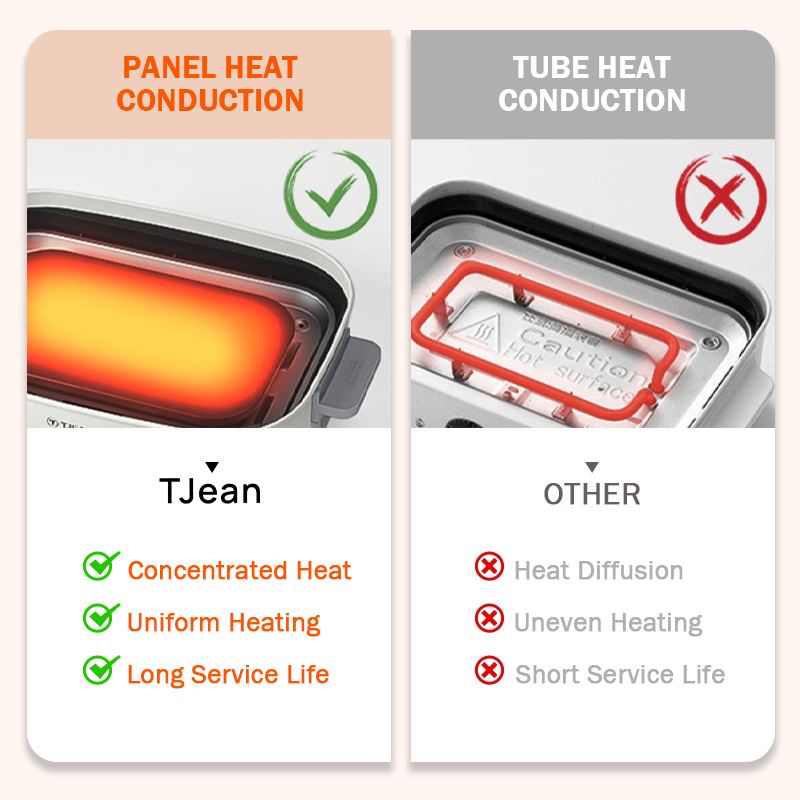 • Versatile Electric Hot Pot - TJean electric hot pot is multiple functional, not only suitable for daily family use but also convenient for gathering with friends. Whether it's sautéing, grilling, shabu-shabu, or steam-ing and hot pot, all dishes can be easily mastered at your fingertips. The unique shape with modern styl-ing adding luxury to your kitchen.
